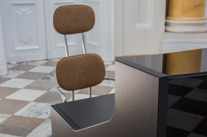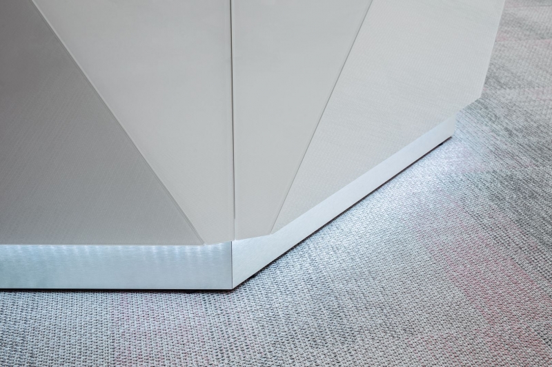 Baza receptiei are o plinta de aluminiu cu iluminare LED - lumina alba rece.