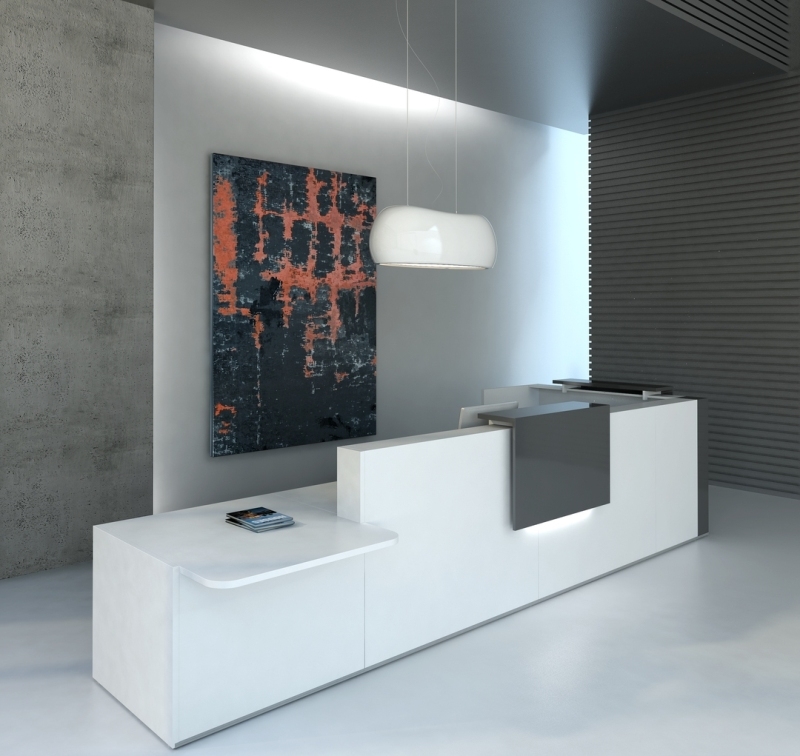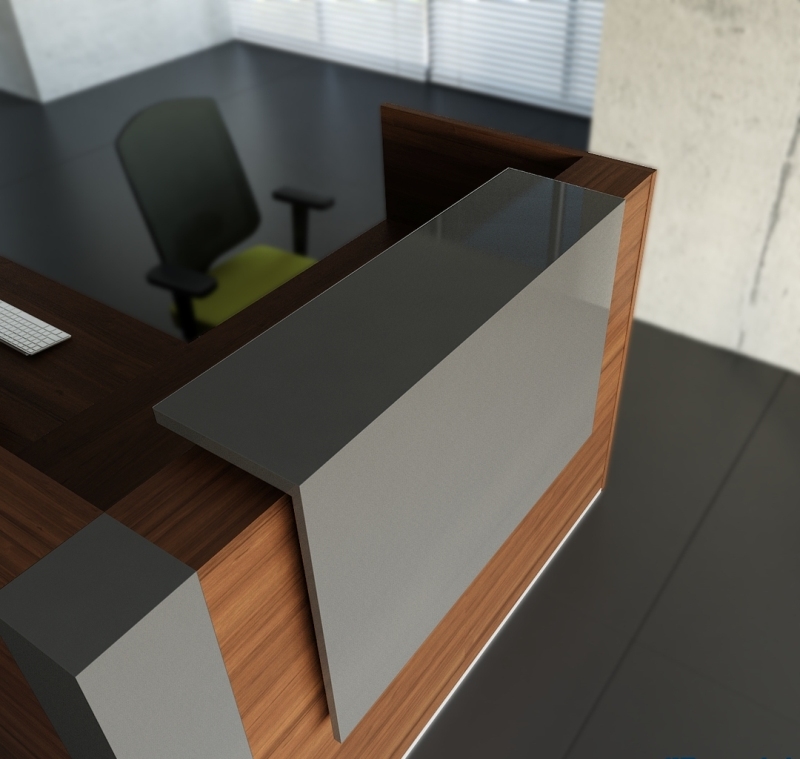 Piciorul de colt al receptiei Tera este din HPL lucios de culoare: alb, negru sau gri antracit.