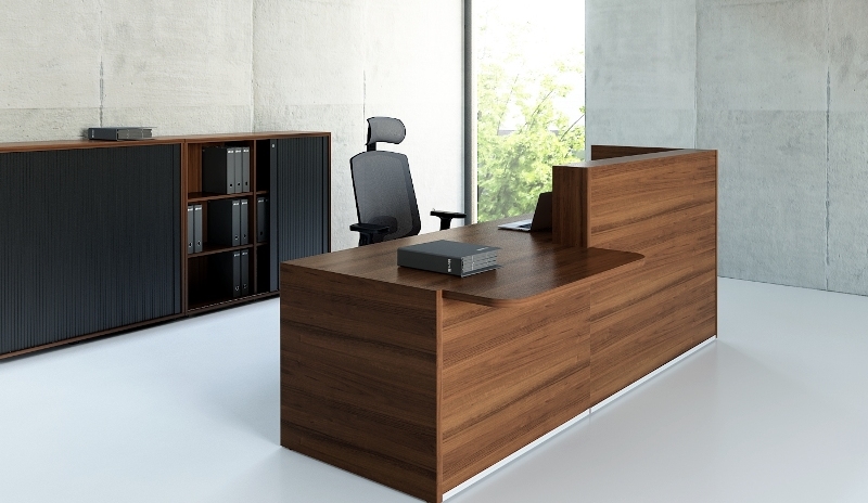 Peretii laterali ai receptiei Tera sunt din MFC de 28mm grosime. Fiecare blat de lucru este dotat cu trecere de cablu ø80mm.