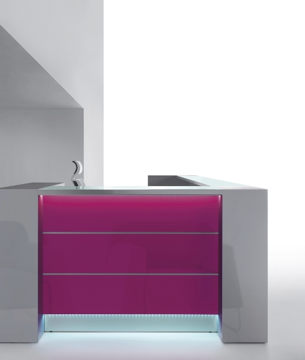 Iluminatul cu LED-uri situate sub blatul superior si deadupra soclului face din receptia Valde o prezenta perfecta camerelor intunecate. Lumina se armonizeaza perfect cu alb in timp ce in cazul unui front colorat accentueaza culoare.