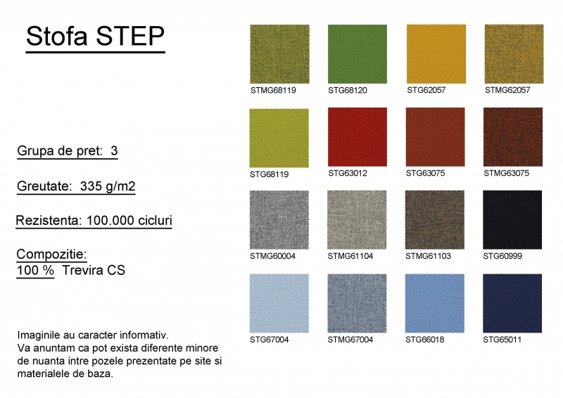 Scaunul este tapitat cu piele ecologica, material textil sau piele naturala, intr-o varietate coloristica mare.
