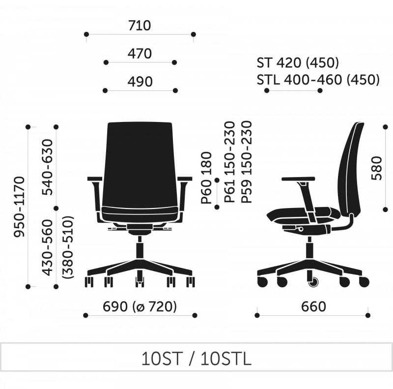 - adancime sezut: 410÷470mm(optiune sezut culisant)